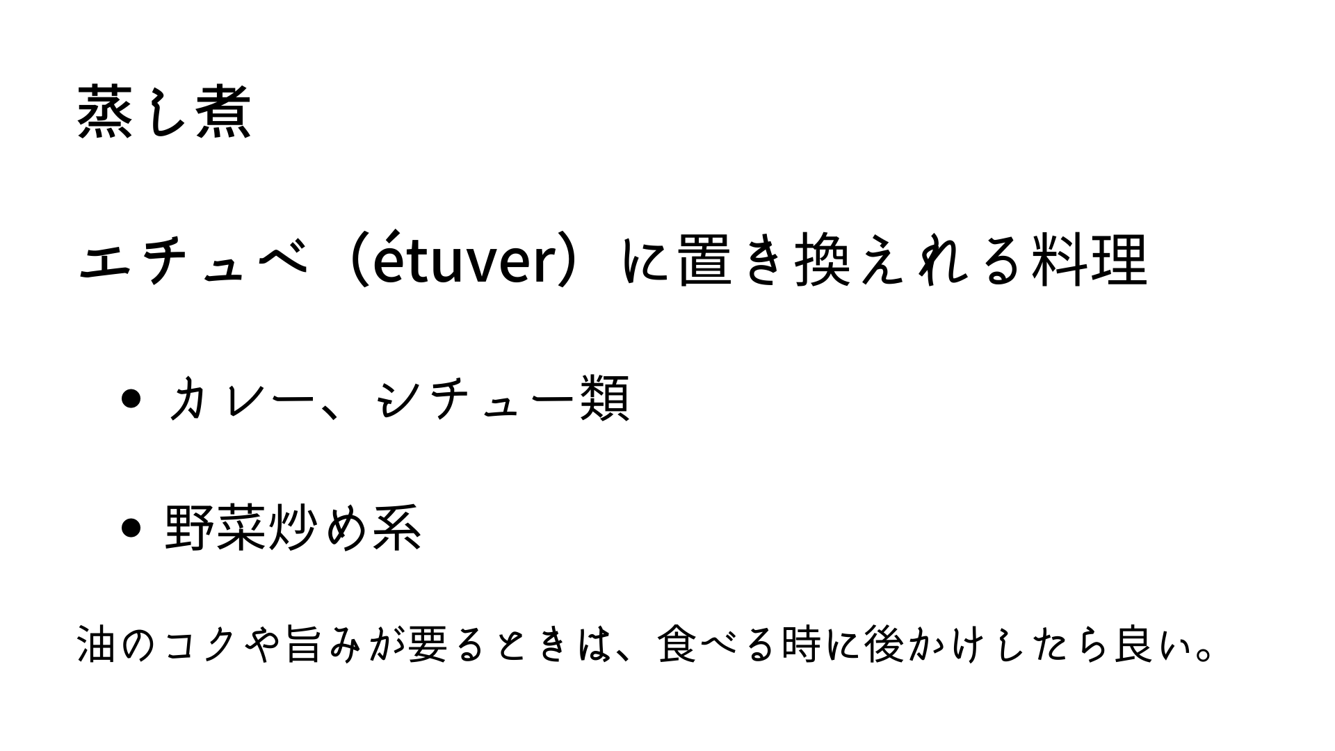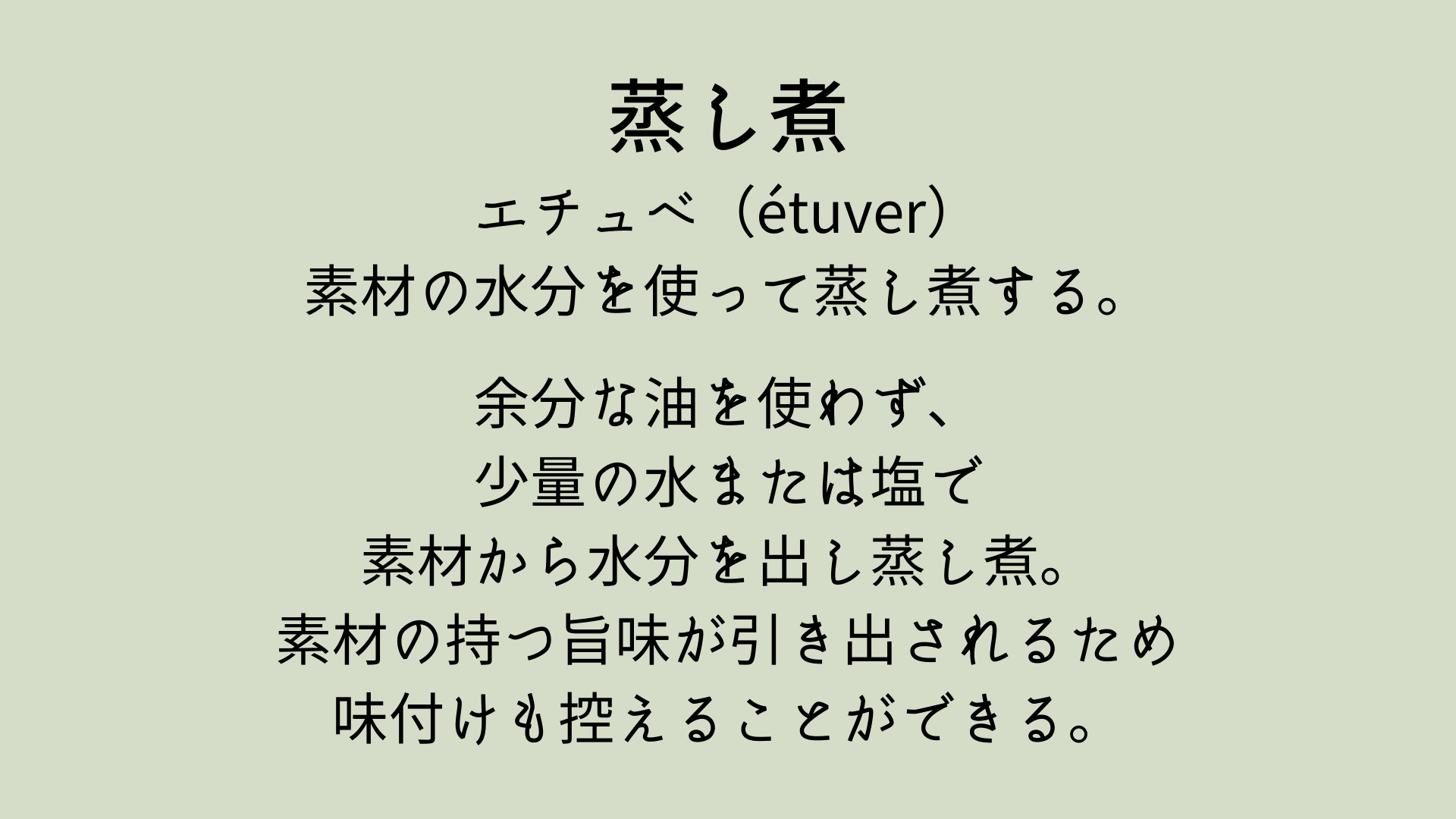食材の水分を活かす方法を使えばいろいろな料理の旨みが増して、しかもヘルシーです!