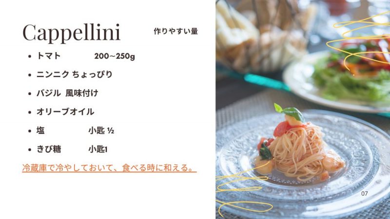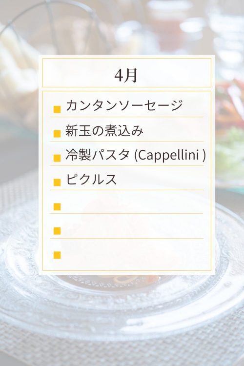 4月)手作りソーセージ・カッペリーニ・新玉と豚の煮込み