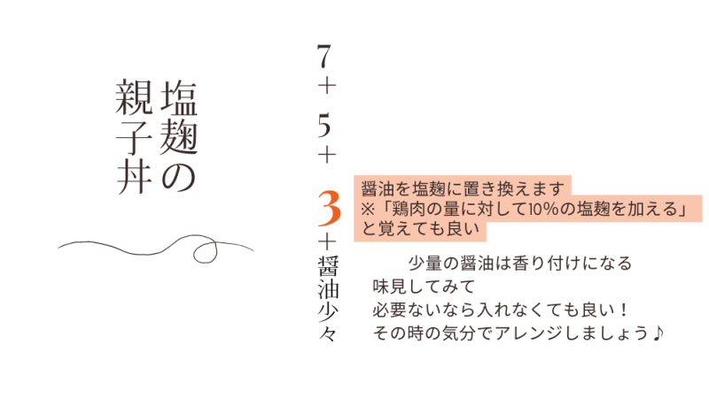 ③ → 塩麹:大匙1(+醤油を大匙¼)
