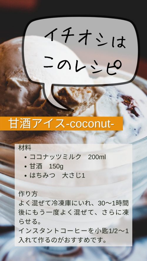甘酒アイス3品・ココナッツオイルで喉ケア