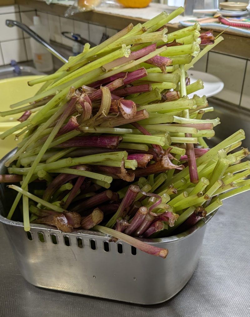 きれいに洗い、3㎝ほどに切り揃えた蕗。