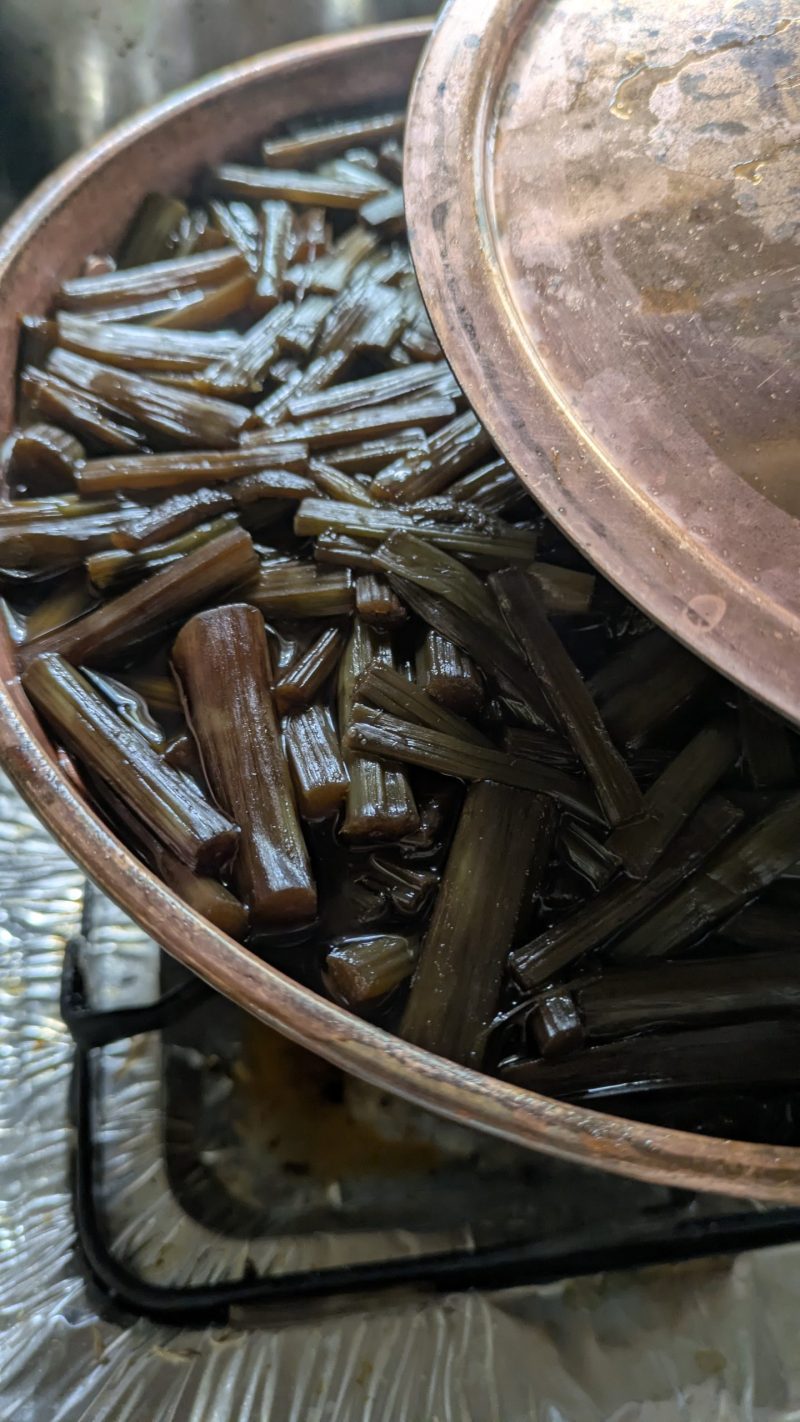 さらにそこから、なるべく蓋を開けずに…じっくり炊くと、蓋のすき間から蕗らしい清々しさとつくだ煮の甘辛い醤油のいい香りが立ち上り家中に広がります。