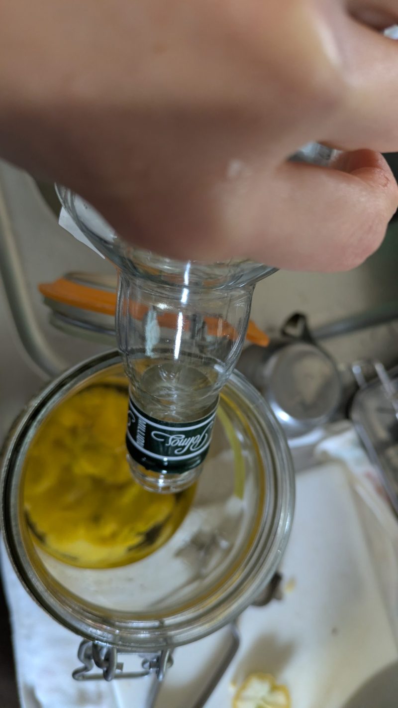 1週間から10日ほどでレモンの皮の色が抜け、白っぽくなり香りがスピリタスに移ります。