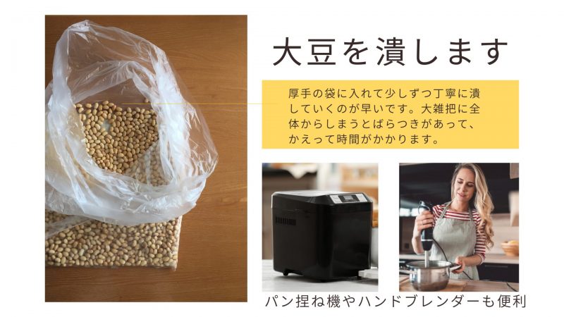 ※大豆の茹で汁は残しておいてください!!(目安:350〜500㎖)