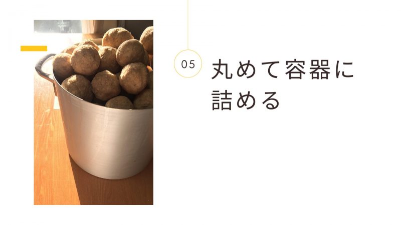 泥だんごみたいにギュッと空気を抜いて丸めましょう。