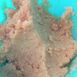 けっこう 疲れる作業です。体重をかけて混ぜるとしやすいです。