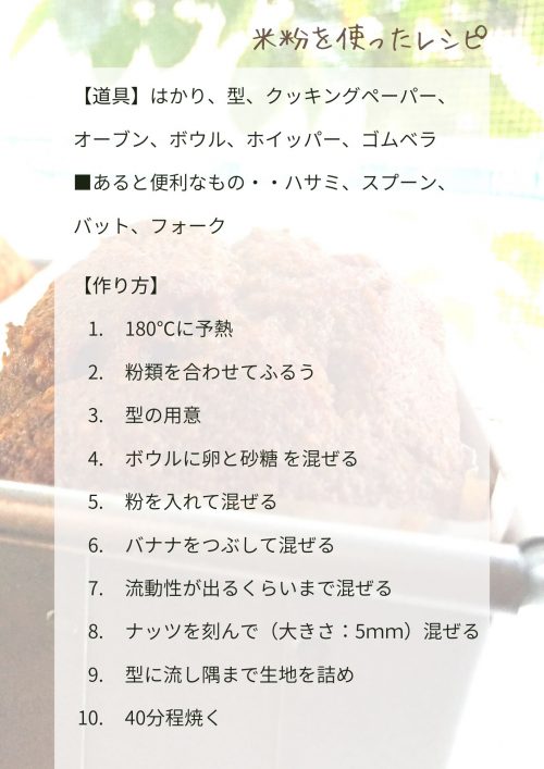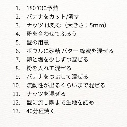 - バナナを減らし、オレンジピールやりんごや無花果やドライフルーツを合わせて使うのもアリです。