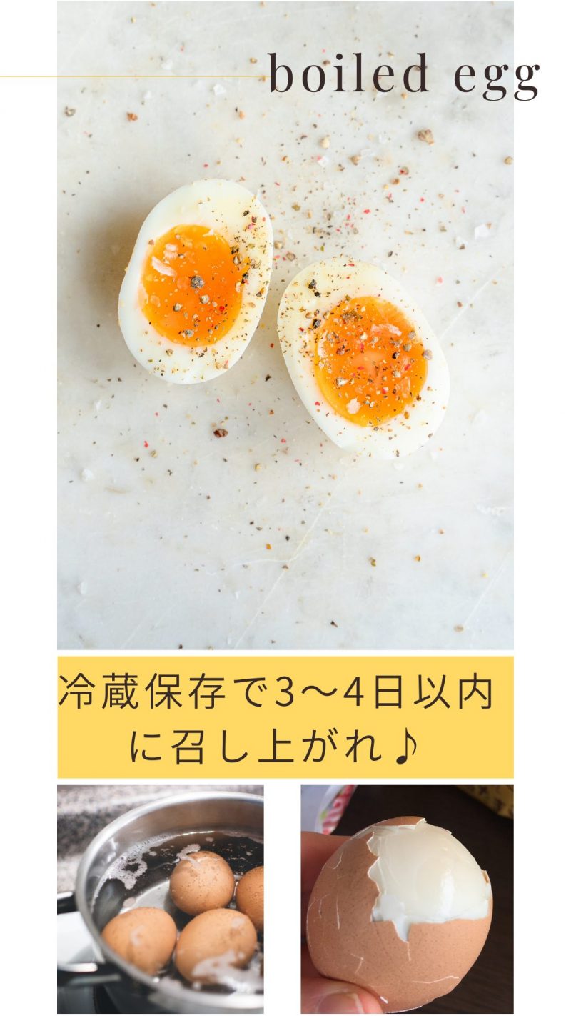 たまごを右手と左手に一つずつ持って、コン・コン・コンとぶつけてちっちゃくヒビをいれてからゆでる。